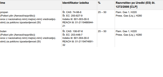 Stavki o nevarnosti (CLP) : H222 - Zelo lahko vnetljiv aerosol.