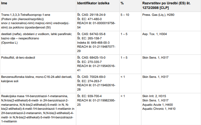 Vsebuje : Polisulfidi, di-terc-dodecil; Benzensulfonska kislina, mono-C16-24-alkil derivati, kalcijeve