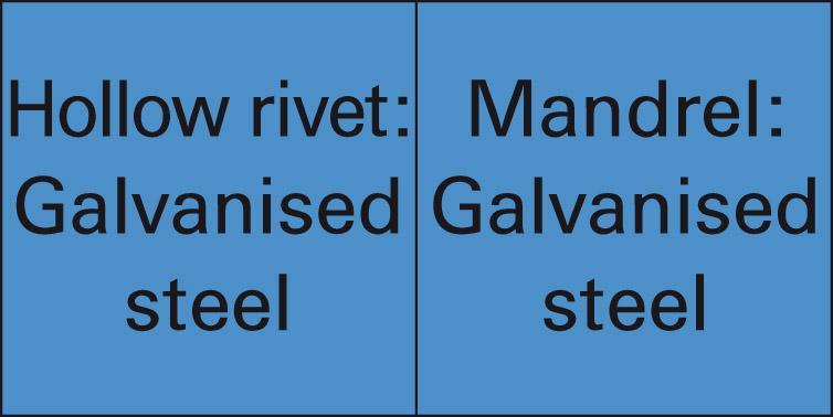 Design: Hollow rivet made of galvanised steel, rivet mandrel made of galvanised steel.