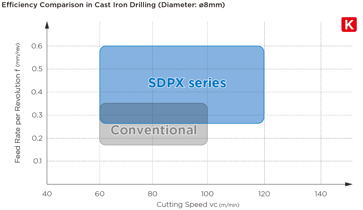 Nizka sila rezanja za stabilno visoko-učinkovito vrtanje.