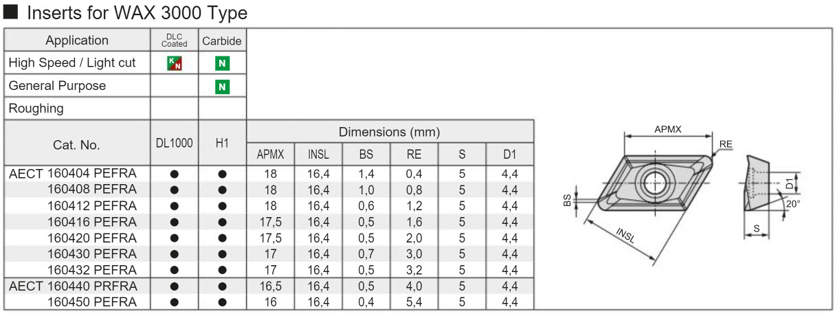AECT 16 DL1000 REZKALNA PLOŠČICA SUMITOMO za WAX 3000